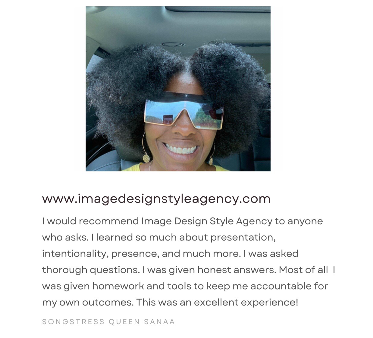 “i would recommend image design style agency to anyone who ask. i learned so much about presentation, intentionally, presence, and much more. i was asked thorough questions. i was given honest answers.”