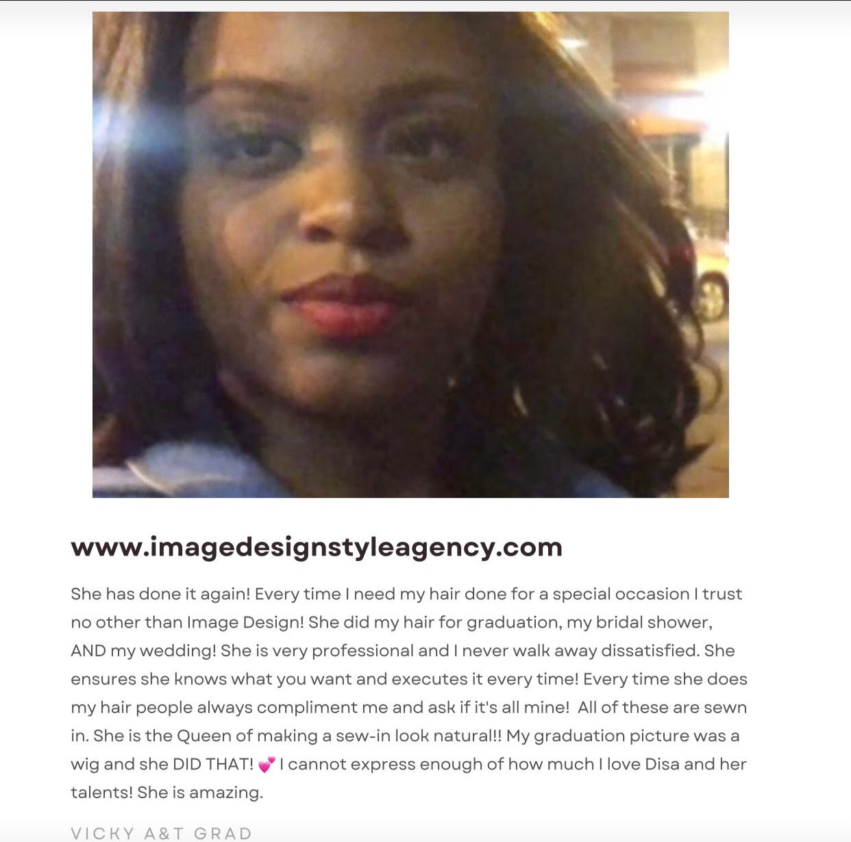 she has done it again! she has done my hair for my special occasions. i trust no other than image design style agency.