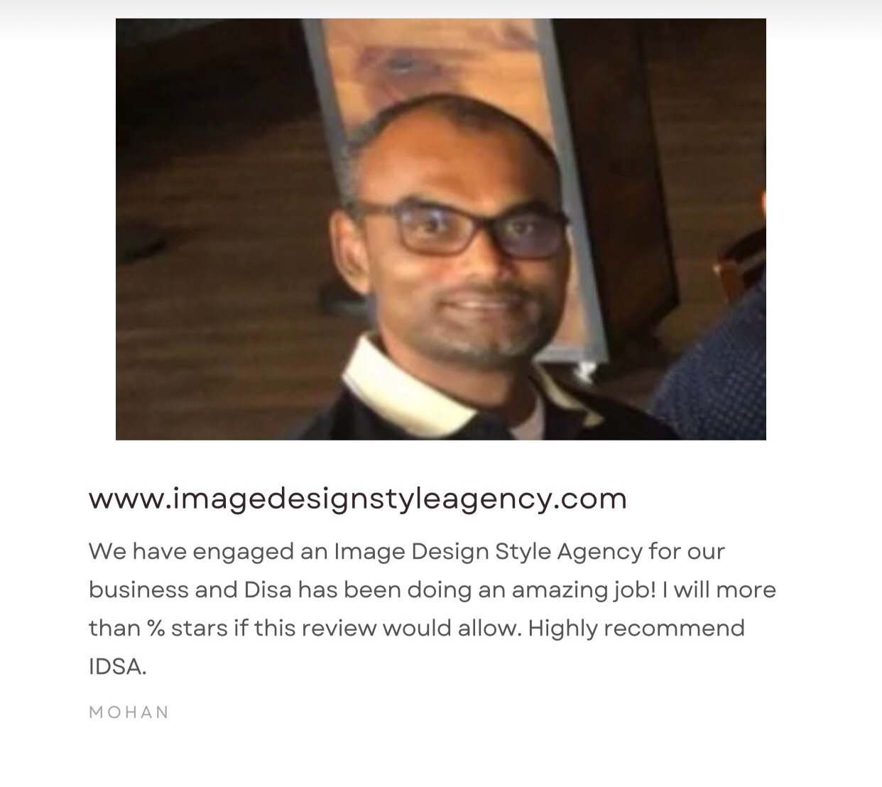 “we have engaged with image design style agency for our business and disa has been doing an amazing job! i will have gave more stars if the review would allowed.